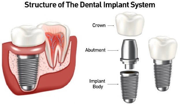 Are medical devices surgically implanted into the jaw to restore a person’s ability to chew or their appearance. They provide support for artificial (fake) teeth, such as crowns, bridges, or dentures.